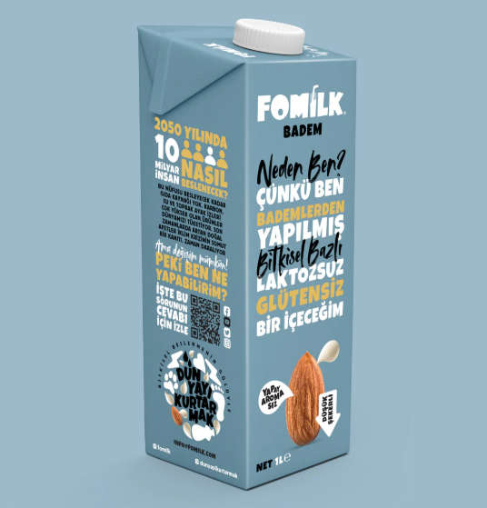 Türkiye’nin ilk yerli üretim bitkisel bazlı içeceği benim! Yapay aroma ve koruyucu içermiyorum. Beyaz bademlerden yapıldım doğal olarak glütensiz ve laktozsuzum. Tek başıma tadımı çıkar veya beni kahvene kat; kahvaltıda, yemeklerde, içeceklerde veya gönlün nerede isterse kullan. Uzun ömürlü olmamın sebebi ultra-ısıtılmam ve beni dış dünyadan çok iyi koruyan kutum! *Aldığın her Fomilk ürünü ile yardıma muhtaç hayvanlara destek oluyorsun. Dünya nüfusu 2050 yılında 10 milyar insana çıkacak. Bu nüfusun nasıl besleneceği ise soru işareti olmaya devam ediyor. Bu kadar insanı besleyecek gıdanın olmadığını biliyoruz. Karbon, toprak ve su ayak izi yüksek olan gıda ürünleriyle yeni nüfusu beslemek sürdürülebilir değil. Günümüzde dünyada bitkisel bazlı beslenmenin faydaları sadece vejetaryen ve vegan beslenen kesimler ile laktoz ve glüten hassasiyeti olanlar tarafından değil, bilinçli ebeveynler, sporcular ve sağlıklı beslenmeye dikkat edenler başta olmak üzere geniş kitleler tarafından bilinmeye ve benimsenmeye başladı. Fomilk, tüketilen geleneksel ürünlere alternatif olarak, bitkisel bazlı, besin değeri yüksek ve lezzetli ürünler geliştiriyor. -Yapay aroma içermez. - Koruyucu içermez. -Glüten içermez. -Kimyasal köpürtücü içermez. -Doğal olarak laktozsuz. -Süt ürünü içermez. (Bitkisel bazlı)