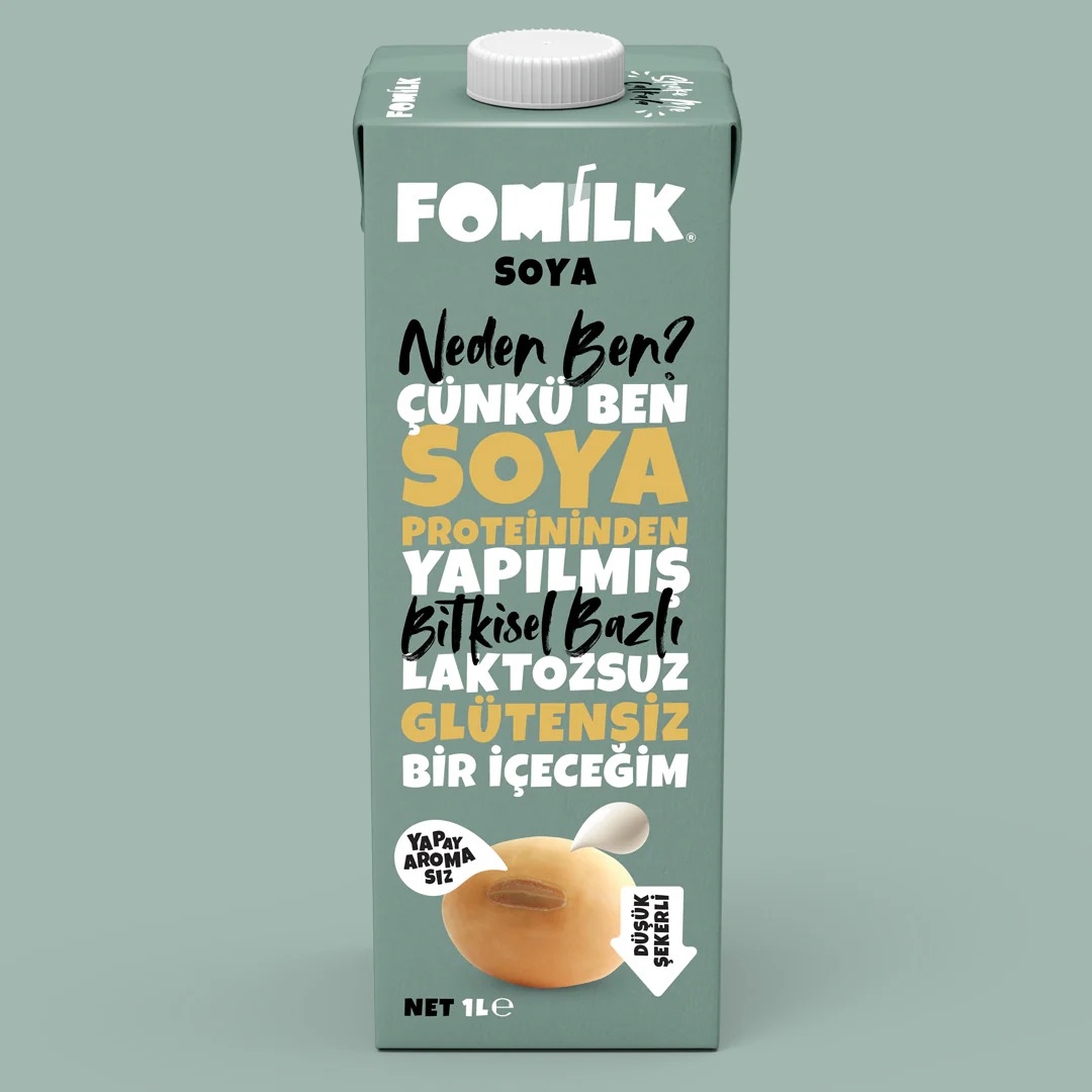 Türkiye’nin ilk yerli üretim bitkisel bazlı içeceği benim! Yapay aroma ve koruyucu içermiyorum. Soya proteininden yapıldım; doğal olarak glütensiz ve laktozsuzum. Tek başıma tadımı çıkar veya beni kahvene kat; kahvaltıda, yemeklerde, içeceklerde veya gönlün nerede isterse kullan. Uzun ömürlü olmamın sebebi ultra-ısıtılmam ve beni dış dünyadan çok iyi koruyan doğa dostu kutum! *Aldığın her Fomilk ürünü ile yardıma muhtaç hayvanlara destek oluyorsun. Dünya nüfusu 2050 yılında 10 milyar insana çıkacak. Bu nüfusun nasıl besleneceği ise soru işareti olmaya devam ediyor. Bu kadar insanı besleyecek gıdanın olmadığını biliyoruz. Karbon, toprak ve su ayak izi yüksek olan gıda ürünleriyle yeni nüfusu beslemek sürdürülebilir değil. Günümüzde dünyada bitkisel bazlı beslenmenin faydaları sadece vejetaryen ve vegan beslenen kesimler ile laktoz ve glüten hassasiyeti olanlar tarafından değil, bilinçli ebeveynler, sporcular ve sağlıklı beslenmeye dikkat edenler başta olmak üzere geniş kitleler tarafından bilinmeye ve benimsenmeye başladı. Fomilk, tüketilen geleneksel ürünlere alternatif olarak, bitkisel bazlı, besin değeri yüksek ve lezzetli ürünler geliştiriyor. -Yapay aroma içermez. - Koruyucu içermez. -Glüten içermez. -Kimyasal köpürtücü içermez. -Doğal olarak laktozsuz. -Süt ürünü içermez. (Bitkisel bazlı)