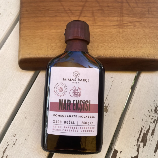 Nar’dan başka hiçbir malzememiz yok. Sadece nar içeren nar ekşimizin ana gövdesini mayhoş tadı baskın olan Hicaz narı oluşturuyor. Urfa yöresine özel Devedişi ve Katırbaşı çeşitlerinin de harmanlanmasıyla temel tatlardan "ekşi” ve "tatlı”yı ideal bir oranla buluşturuyoruz.
