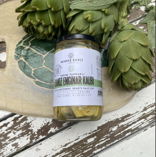 Urla bölgesinin coğrafi işaretli ürünü olan Sakız Enginar ve Dalaman limonu ile sizlere lezzetine doyulmaz bir konserve hazırladık. Salamura suyu ile buluşmadan önce ayıklanan enginarların kararmaması içinde sadece limon suyu kullandık. Salamura suyumuzu da sadece limon suyu,limon kabuğu tozu ve kaynak tuzu ile hazırladık. Böylece tam anlamı ile doğal ve katkısız bir ürün elde ettik.