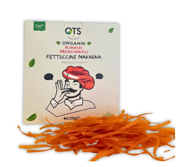 Ots Organik Kırmızı Mercimekli Fettuccini, lezzetli ve besleyici bir makarna alternatifidir. Organik kırmızı mercimek fettuccini, doğal ve sağlıklı bir seçenektir. Yüksek protein içeriğiyle tok tutucu özelliğe sahip olan kırmızı mercimek, bu makarnayı hem lezzetli hem de besleyici kılar.