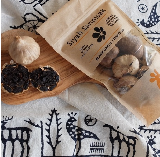 Hiçbir katkı maddesi ilave edilmeden bekleyen sarımsaklar siyahlaşır ve besin içeriği zenginleşir.