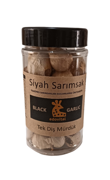 Siyah sarımsak topraktan siyah olarak yetişmez. Yani bir tür değildir. Taşköprü’nün en kaliteli sarımsakları kullanılarak Kastamonu’daki modern üretim tesisimizde fermantasyon yöntemi ile üretilmiştir. Fermantasyon süresince sarımsak sıcak ve nemli bir ortamda 4-6 hafta kadar bekletilir. Hiçbir katkı maddesi ilave edilmeden bu ortamda uzun süre bekleyen sarımsak siyahlaşır ve besin içeriği zenginleşir. Rahatsız edici kokusundan arınır.