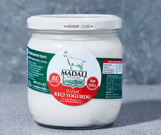 Madalı'nın %100 Keçi Süzme Yoğurdu 400 gr ürünü Eskitadında.com'da. %100 keçi sütünden yağı alınmadan doğal yoğurt mayası ile mayalanarak hazırlanan Madalı keçi yoğurtları geleneksel usullerle...